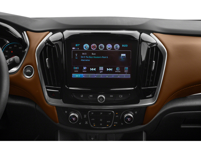 Check out all of the features on this 2018 Chevrolet Traverse Hit The Road Package (Roof Rack Cross Rails (LPO)), Interior Protection Package (LPO) (1st & 2nd Row All-Weather Floor Mats, 3rd Row All-Weather Floor Mats, and All-Weather Cargo Mat (LPO)), Preferred Equipment Group 1LZ, Trailering Equipment (Heavy-Duty Cooling System), Dual SkyScape 2-Panel Power Sunroof, Navigation System, Power Liftgate, Wheels: 20 Argent Metallic Machine Faced Aluminum, 10 Speakers, 3.49 Axle Ratio, 3rd row seats: split-bench, 4-Wheel Disc Brakes, 7-Passenger Seating (2-2-3 Seating Configuration), ABS brakes, Air Conditioning, AM/FM radio: SiriusXM, Apple CarPlay/Android Auto, Auto High-beam Headlights, Auto-dimming door mirrors, Auto-dimming Rear-View mirror, Automatic temperature control, Body-Color Molded Assist Steps (LPO), Bose Premium 10-Speaker Audio System Feature, Brake assist, Bumpers: body-color, Compass, Delay-off headlights, Driver door bin, Driver vanity mirror, Dual front impact airbags, Dual front side impact airbags, Electronic Stability Control, Emergency communication system: OnStar Guidance, Four wheel independent suspension, Front anti-roll bar, Front Bucket Seats, Front Center Armrest, Front dual zone A/C, Front fog lights, Front reading lights, Fully automatic headlights, Garage door transmitter, Heated door mirrors, Heated front seats, Heated rear seats, Heated steering wheel, Illuminated entry, Low tire pressure warning, Memory seat, Occupant sensing airbag, Outside temperature display, Overhead airbag, Overhead console, Panic alarm, Passenger door bin, Passenger vanity mirror, Perforated Leather-Appointed Seat Trim, Power door mirrors, Power driver seat, Power passenger seat, Power steering, Power windows, Premium audio system: Chevrolet MyLink, Radio data system, Radio: Chevrolet MyLink AM/FM Stereo w/Navigation, Rear air conditioning, Rear anti-roll bar, Rear reading lights, Rear window defroster, Rear window wiper, Remote keyless entry, Roof rack: rails only, Security system, SiriusXM Satellite Radio, Speed control, Speed-sensing steering, Spoiler, Steering wheel memory, Steering wheel mounted audio controls, Tachometer, Telescoping steering wheel, Tilt steering wheel, Traction control, Trip computer, Turn signal indicator mirrors, Variably intermittent wipers, Ventilated front seats, and Voltmeter.