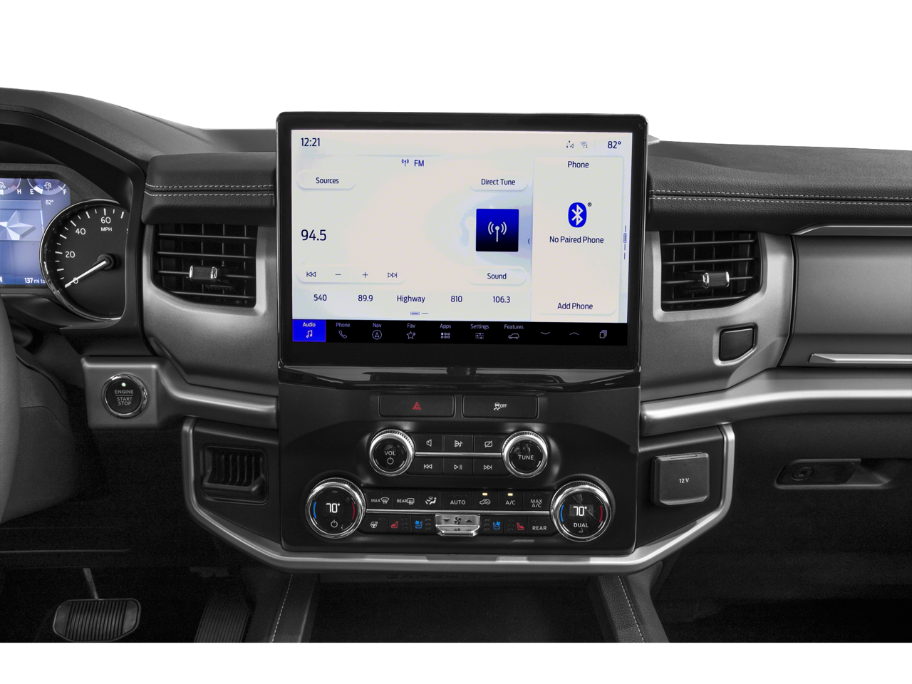 Ford's SYNC 4 infotainment system with a 15.5-inch portrait touchscreen is the centerpiece of the Expedition Max interior — one of the largest in-vehicle screens available on any production SUV. Wireless Apple CarPlay and Android Auto come standard, along with a 4G LTE hotspot that can support multiple devices simultaneously. Ford Pass Connect allows remote start, lock/unlock, and vehicle status monitoring from your smartphone.