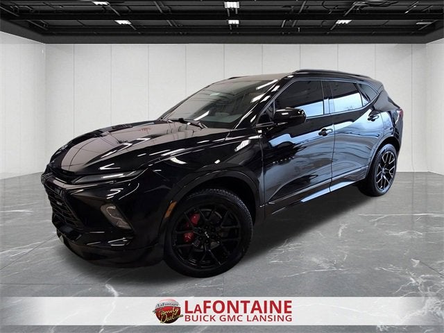 Certified. Black 2023 Chevrolet Blazer 4D Sport Utility RS AWD 9-Speed Automatic with Overdrive 3.6L V6 SIDI Parking Sensors, Remote Start, Apple Carplay/Android Auto, Backup Camera, 1st & 2nd Row All-Weather Floor Liners (LPO), Enhanced Convenience Package, Floor Liner Package (LPO), Heated Driver & Front Passenger Seats, Heated front seats, Heated Rear Outboard Seating Positions, Heated Steering Wheel, Integrated Cargo Liner (LPO), Memory Settings For Driver Seat & Exterior Mirrors, Panic alarm, Perforated Leather-Appointed Seat Trim, Power Liftgate, Power Panoramic Tilt-Sliding Sunroof, Power Tilt & Telescoping Steering Column, Preferred Equipment Group 1RS, Rear Park Assist w/Audible Warning, Ventilated Driver & Front Passenger Seats, Wheels: 20 Technical Gray Aluminum. 19/26 City/Highway MPG Clean CARFAX.Certification Program Details: CARBRAVO BENEFITS ?? Courtesy Transportation: Stay on schedule with courtesy transportation1 if your vehicle needs a warranty repair. We'll always make sure you have alternative transportation or reimburse you for a temporary vehicle. ?? 1-month trial2 of OnStar® and Connected Services or OnStar GuardianTM app3: Enjoy OnStar safety services like Automatic Crash Response, Roadside Assistance and the OnStar Guardian app. Plus, stay connected with in-vehicle data and your vehicle's mobile app. ?? 24-Hour Roadside Assistance: If you need us, help is just a phone call away with roadside assistance4 anytime, day or night. ?? 10-day/500-mile exchange: If you don't absolutely love your purchase, bring it on back and exchange it for another one.5 ?? 3-month trial6 of SiriusXM®: 165+ channels in the car plus access to 350+ channels on the SXM App. Enjoy commercial-free music, performances and interviews, plus comedy, talk, sports & more. ?? Multi-point inspection: Enjoy peace of mind knowing that all CarBravo vehicles undergo a rigorous multi-point inspection. Also, before a CarBravo vehicle is listed or sold, dealers complete all safety recalls. You can also double-check the recall status of any vehicle at www.nhtsa.gov/recalls.We use state-of-the-art software to price our vehicles to be the most competitive in the market. If you have found a better value, let us know about it. We would love the opportunity to keep giving the best values in the market. Contact our Sales Department at 517-507-4955 with your questions and to set up an appointment. Be our guest at LaFontaine Buick GMC of Lansing, and put us to work for you. NOTE: All Equipment Listed May Not Be Available.