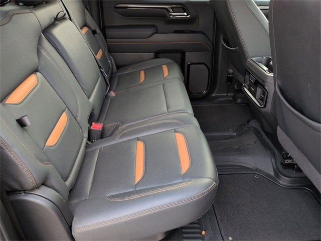 Certified. Onyx Black 2023 GMC Sierra 1500 4D Crew Cab AT4 4WD 10-Speed Automatic EcoTec3 6.2L V8 CARFAX One-Owner. Fully inspected by our Service Dept, 120-Volt Instrument Panel Power Outlet, 2 Charge/Data USB Ports Inside Center Console, 2 Type-C Charge-Only Rear USB Ports, 2 USB Ports, 220 Amp Alternator, Adaptive Cruise Control, AT4 Preferred Package, AT4 Premium Package, Auto-Locking Rear Differential, Bed View Camera, Black Chrome Header & Grille Insert Bars, Color-Keyed Carpeting Floor Covering, Compass, Deep-Tinted Glass, Electric Rear-Window Defogger, Electrical Steering Column Lock, Floor-Mounted Center Console, Front Prem Floor Liners w/Removable Carpet Insert, Front Rainsensing Wipers, GMC Connected Access Capable, HD Surround Vision, Heated 2nd Row Outboard Seats, Heated Driver & Front Outboard Passenger Seating, Heated steering wheel, Heavy-Duty Air Filter, Hill Descent Control, Hitch Guidance w/Hitch View, Illuminated entry, In-Vehicle Trailering App, Integrated Trailer Brake Controller, Keyless Open & Start, LED Cargo Area Lighting, Multicolor 15 Diagonal Head-Up Display, Navigation System, Off-Road High Clearance Step (LPO), OnStar & GMC Connected Services Capable, Perimeter Lighting, Power Door Locks, Power Front Passenger Windows w/Express Up/Down, Power Front Windows w/Driver Express Up/Down, Power Rake & Telescoping Steering Column, Power Rear Windows w/Express Down, Power Sliding Rear Window w/Rear Defogger, Preferred Equipment Group 4SB, Premium Bose 7-Speaker Sound System, Push Button Start, Rear Camera Mirror, Rear Cross Traffic Braking, Rear Pedestrian Detection, Rear Wheelhouse Liners, Red Recovery Hooks, Remote Vehicle Starter System, SiriusXM w/360L, Spray-On Pickup Bed Liner w/AT4 Logo, Steering Wheel Audio Controls, Technology Package, Theft Deterrent System (Unauthorized Entry), Trailer Camera Provisions, Trailer Side Blind Zone Alert, Trailering Package, Ultrasonic Front & Rear Park Assist, Universal Home Remote, Ventilated Driver & Front Passenger Seats, Wi-Fi Hotspot Capable, Wireless Charging, Wireless Phone Projection. Clean CARFAX.