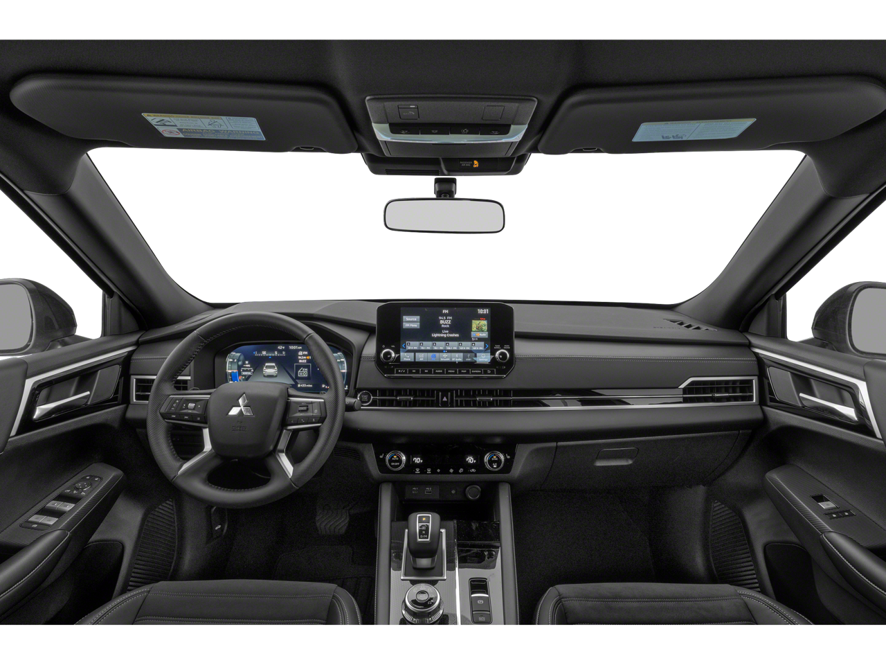 - Radio: AM/FM 9.0" Navigation w/Smartphone Link -inc: 6 speakers, Apple CarPlay, Google Android Auto, SXM all-access and SXM traffic and travel link w/90-day subscription, Mitsubishi Connect, HD Radio, Bluetooth® wireless technology, steering wheel controls for phone, audio and voice recognition and USB ports
