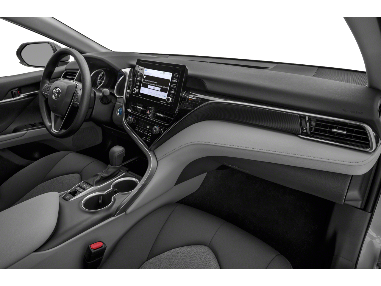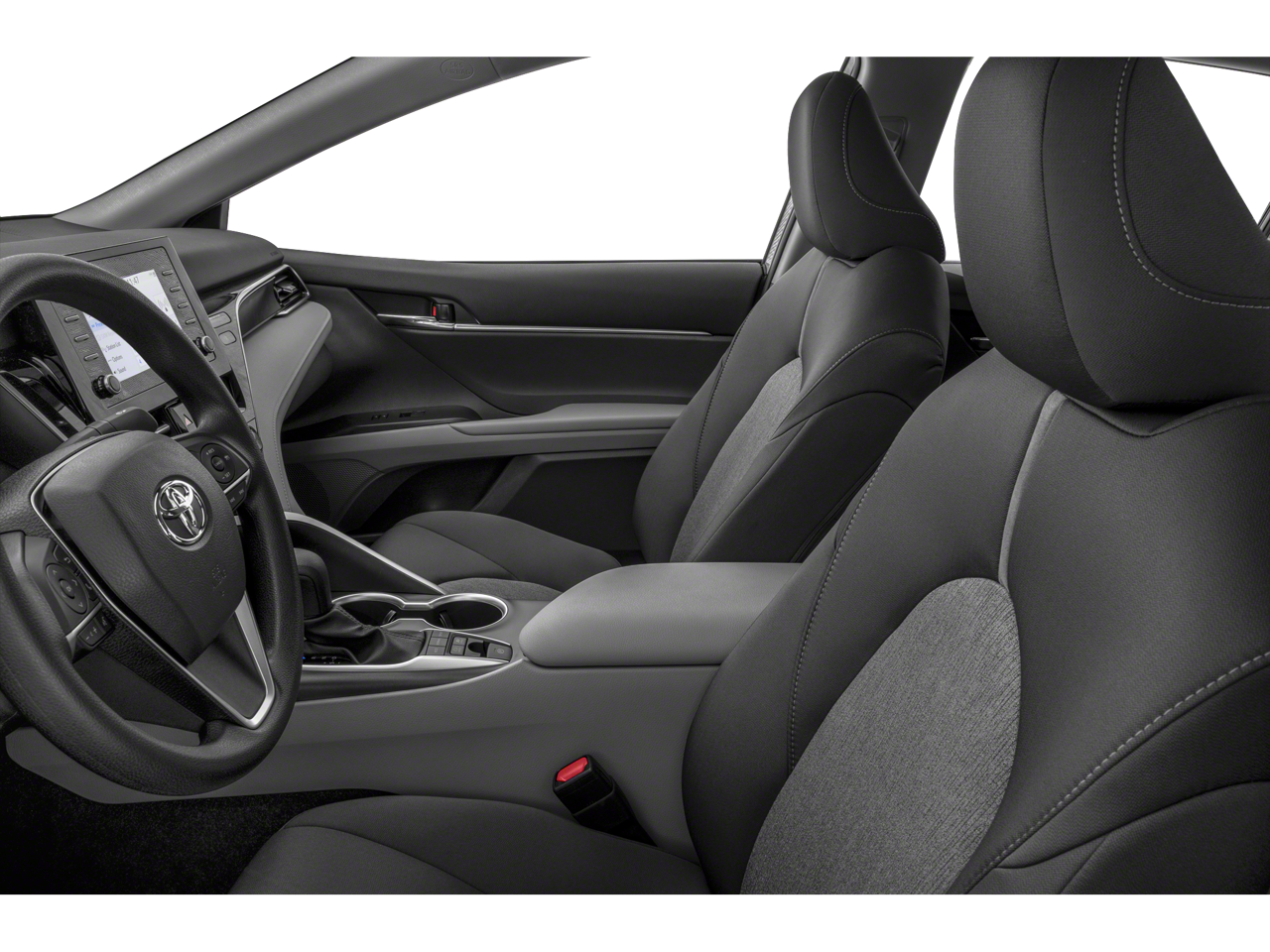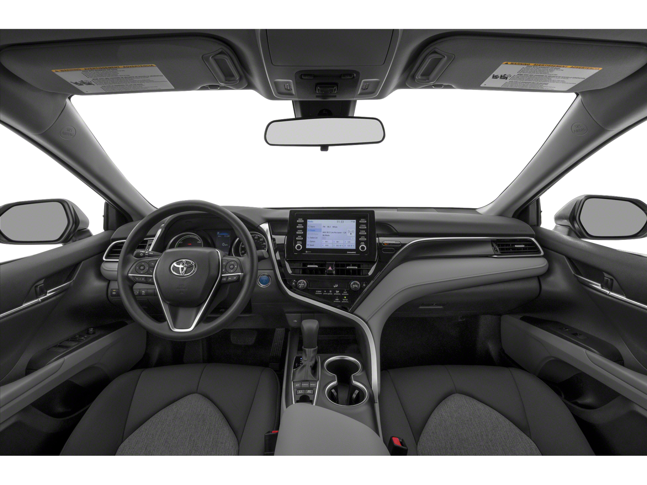 Check out all of the features on this 2023 Toyota Camry Hybrid 4-Wheel Disc Brakes, 6 Speakers, 6.5J x 16 Steel Wheels, ABS brakes, Air Conditioning, All Weather Floor Liners/Cargo Tray (TMS), AM/FM radio: SiriusXM, Apple CarPlay/Android Auto, Auto High-beam Headlights, Automatic temperature control, Brake assist, Bumpers: body-color, Delay-off headlights, Driver door bin, Driver vanity mirror, Dual front impact airbags, Dual front side impact airbags, Electronic Stability Control, Emergency communication system: Safety Connect (1-year trial), Exterior Parking Camera Rear, Fabric Seat Trim, Four wheel independent suspension, Front anti-roll bar, Front Bucket Seats, Front Center Armrest, Front dual zone A/C, Front reading lights, Fully automatic headlights, Illuminated entry, Knee airbag, Low tire pressure warning, Occupant sensing airbag, Outside temperature display, Overhead airbag, Overhead console, Panic alarm, Passenger door bin, Passenger vanity mirror, Power door mirrors, Power driver seat, Power steering, Power windows, Radio data system, Radio: Audio, Rear anti-roll bar, Rear seat center armrest, Rear side impact airbag, Rear window defroster, Remote keyless entry, Security system, Speed control, Speed-sensing steering, Split folding rear seat, Steering wheel mounted audio controls, Telescoping steering wheel, Tilt steering wheel, Traction control, Trip computer, and Variably intermittent wipers.